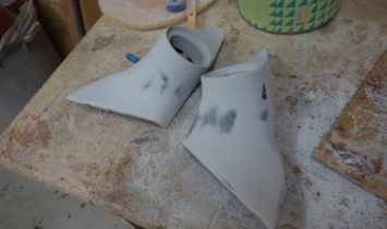 DEH-P01のパネル制作!パテ成形終わって仮付けこのあと下処理してスプレーパテぶっかけます!おもいっきりかけてますので垂れてます(笑)ここから丹念に磨き塗装、寒すぎて水は固まりますがパテはなかなか固まりません(;一_一)…