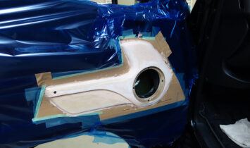 ハイエースのアウターバッフル制作中アウターバッフルの形をおおまかにMDFで作ってパテで成形していきますが何か変だな?なんでこんなにパテ盛ってんだ?と思ったらMDFで作ったパーツ1つつけ忘れてるじゃないですか(汗)パテ盛った後だから臨機応変に対応して大体の形が完成チリ合…