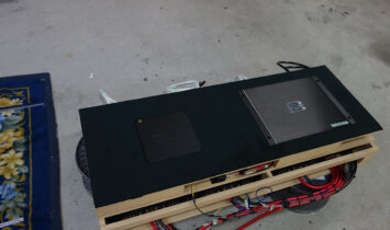 2段構造の下側はアンプ3機とヒューズブロックこの上にもう1機アンプとDSP中敷の化粧パネル入れてトランクに投入して化粧パネル制作といきたいですがこれ入れちゃうと車高調が交換できないのでとりあえず今日はここまで・・・…