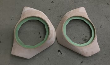 アクシオのアウターバッフル純正トリムのスピーカーグリル部分の形状がおにぎりみたいな形なのでおにぎりに沿って作っていきますトヨタの斬新なデザインになかなかついて行けないのはやっぱりおじさんなのかもしれません!?おじさんですが・・・でおにぎり成形終了!こっちはミ…