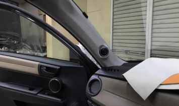 アクシオはこんな感じに仕上がってますミッドバスのアウターバッフルは純正トリムのおにぎりグリルを隠すために大きくなりましたが黒のトリムに黒のレザーなんで違和感はないんじゃないかなスコーカーは迷いましたね、エンクロの容量取るために15mm前に出すか10秒ぐらい悩みましたが飛び出…