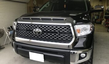 でかいですタンドラ!ナビ取り付けです。ナビはフローティングディスプレイのパナソニック、10インチですがタンドラに乗ってディスプレイ見ると10インチにみえませんこの10インチディスプレイ折れてしまうんじゃないかと思えるくらい薄いOELディスプレイでブルーレイも…