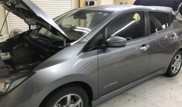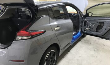 リーフが去って新しいリーフが入庫、エンジンルーム?じゃないか電気自動車なのでなんて言えば正解なのかわからないですがボンネット開けたらバッテリーあるので電源線を車内に引いてからスピーカー線をドア内に引き込みます。ドア側のカプラーは穴が開いてるので削ることもなくここでOK車両側を見ると…