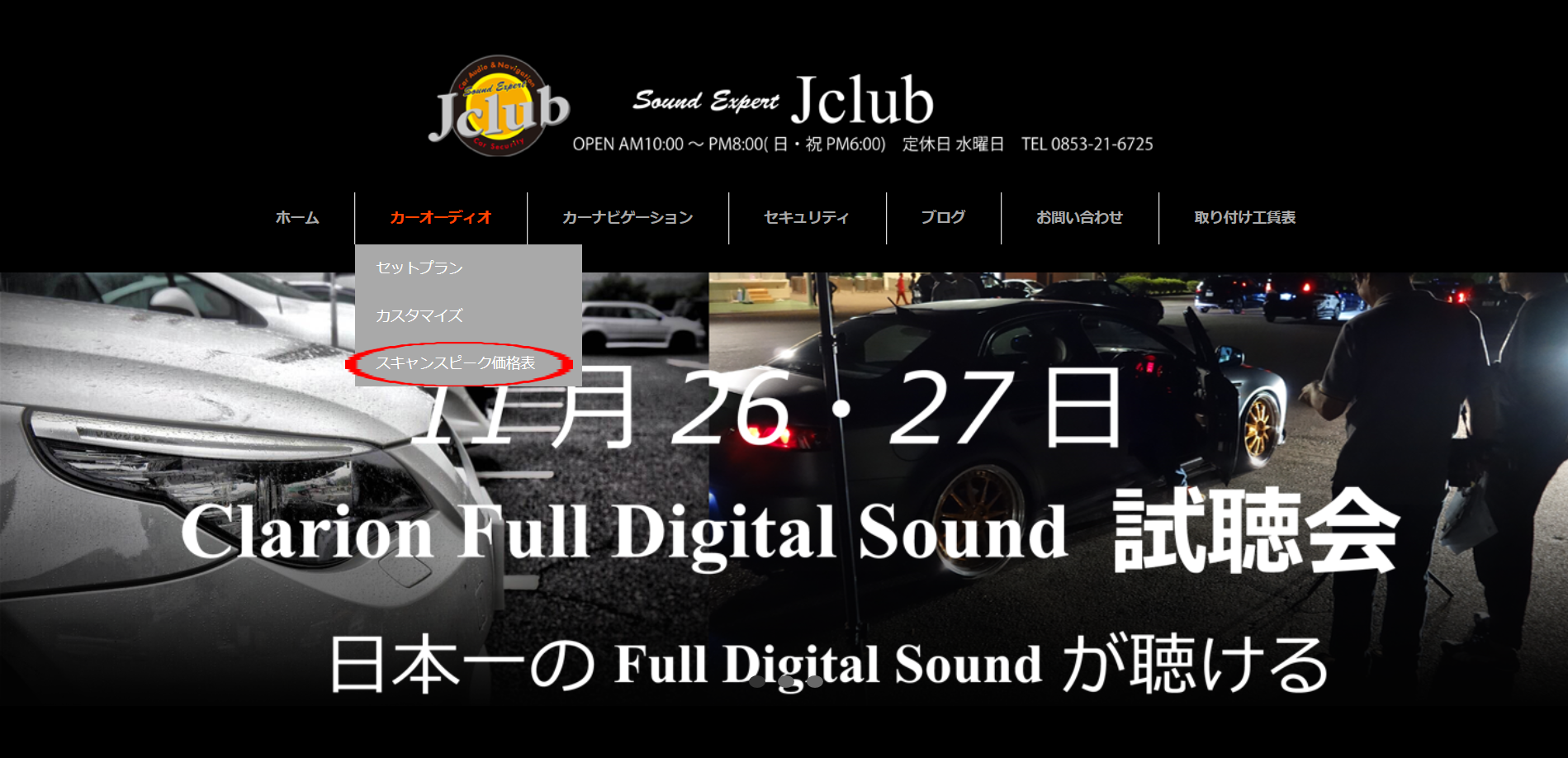 カーオーディオにカーソルを置くと小MENUの中にスキャンスピーク価格表が表れますのでクリックしてください