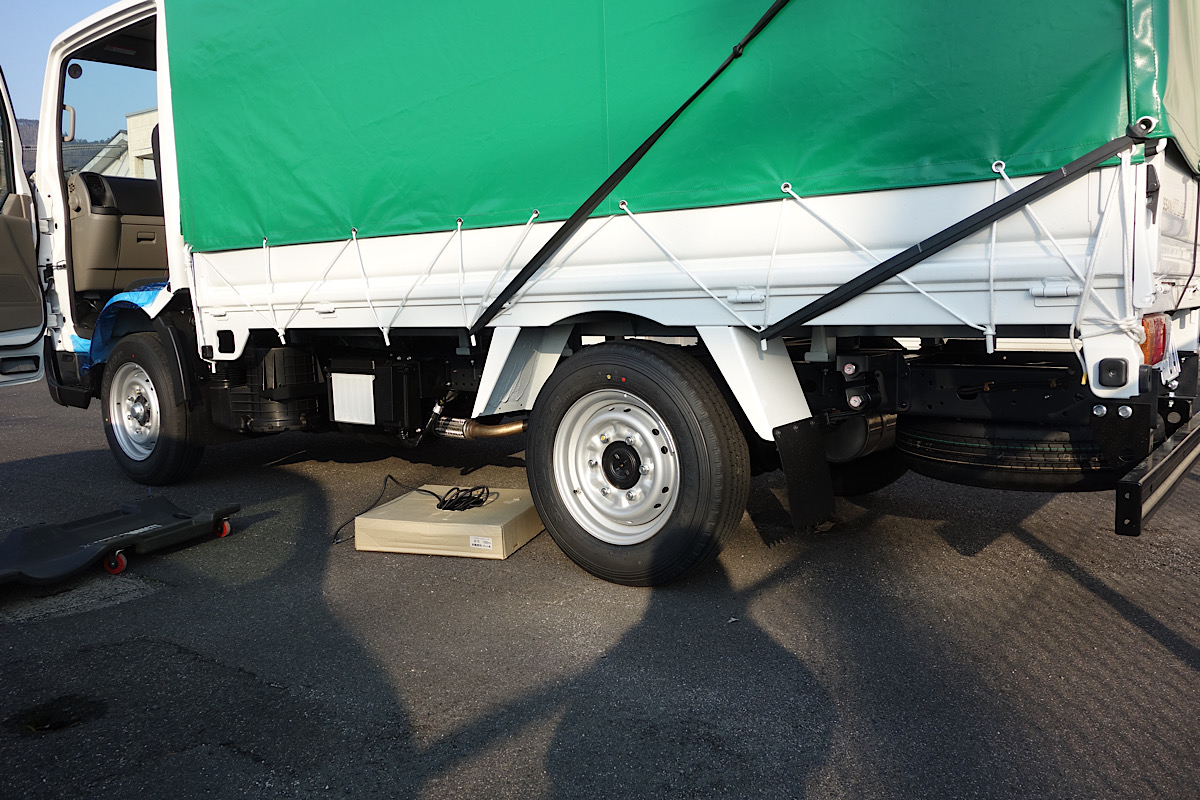 今日は午後からトラックにナビにバックカメラ、ドラレコなどの取り付けですが幌が高くてピットに入庫できないので外での取り付け
