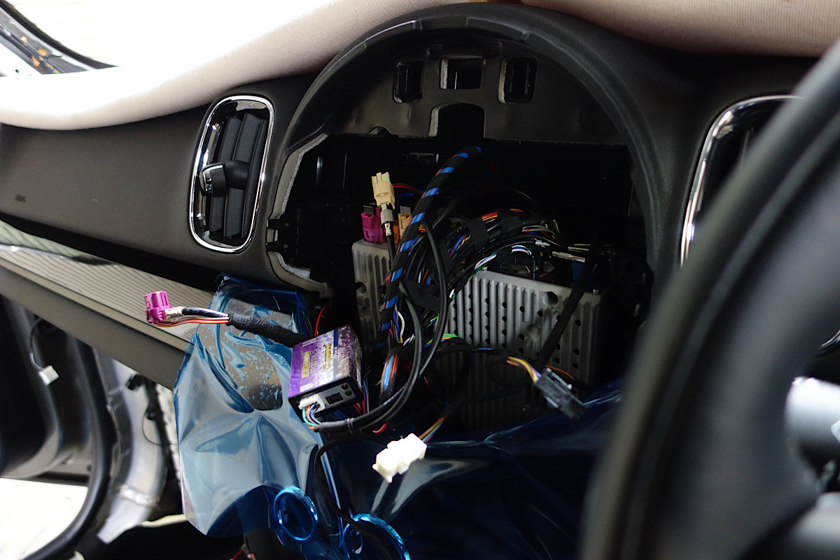 インターフェイスは助手席グローブボックスの上に取り付けます