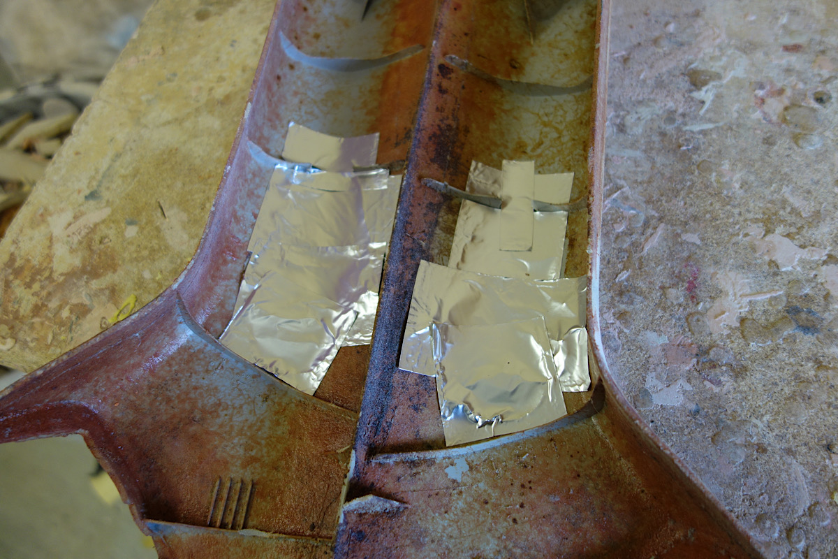 ピラーに盛ってたパテ&樹脂を剥がして穴を埋めていき穴をパテで埋めていきます