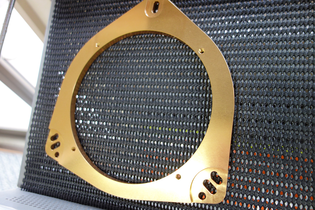 M&Mデザインのアルミインナーバッフル、BMW用はそのままスピーカーを取り付けことができますが