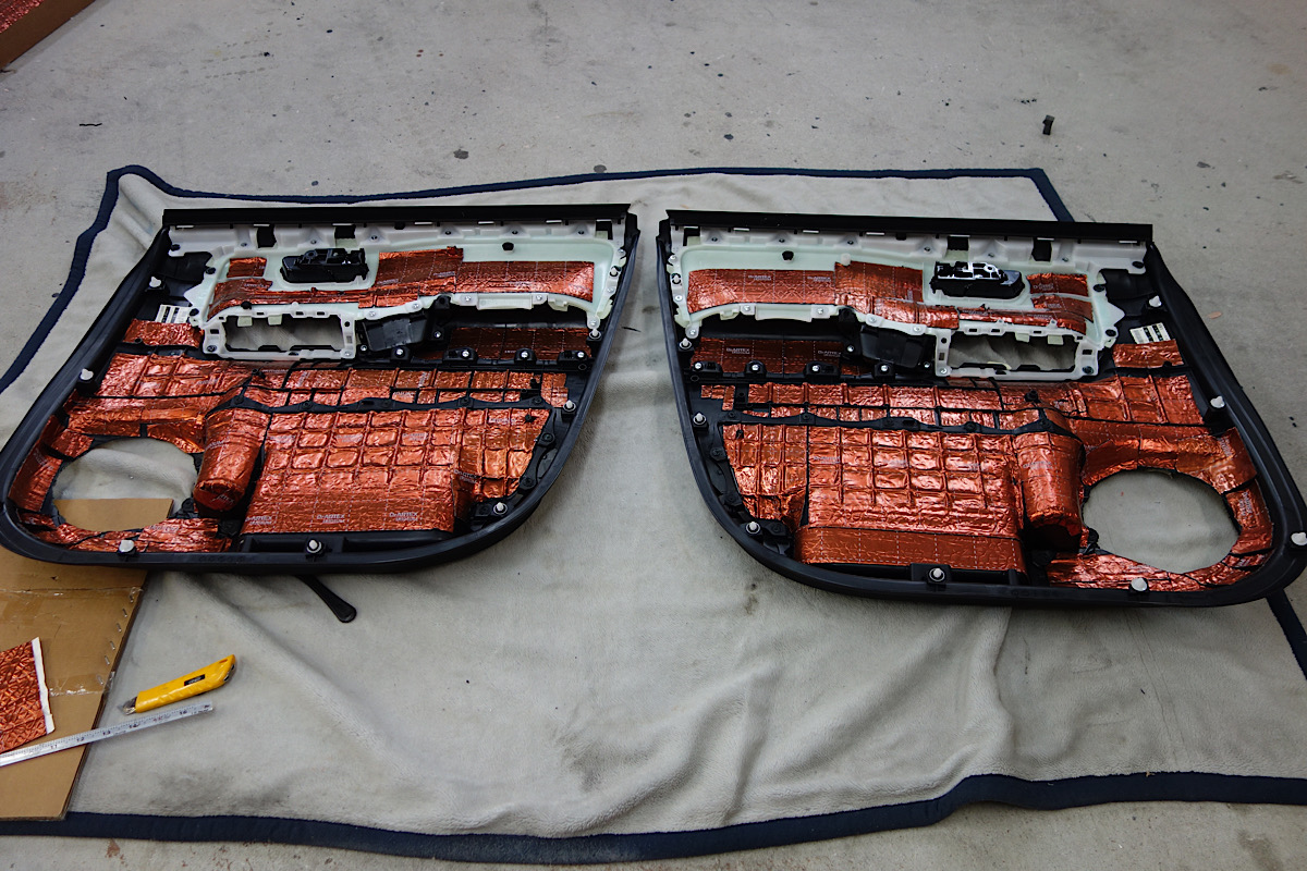 やってることは単純作業ですが凸凹のトリムをヘラとローラーで制振材とトリムの中に入ってる空気を抜く作業は大変です