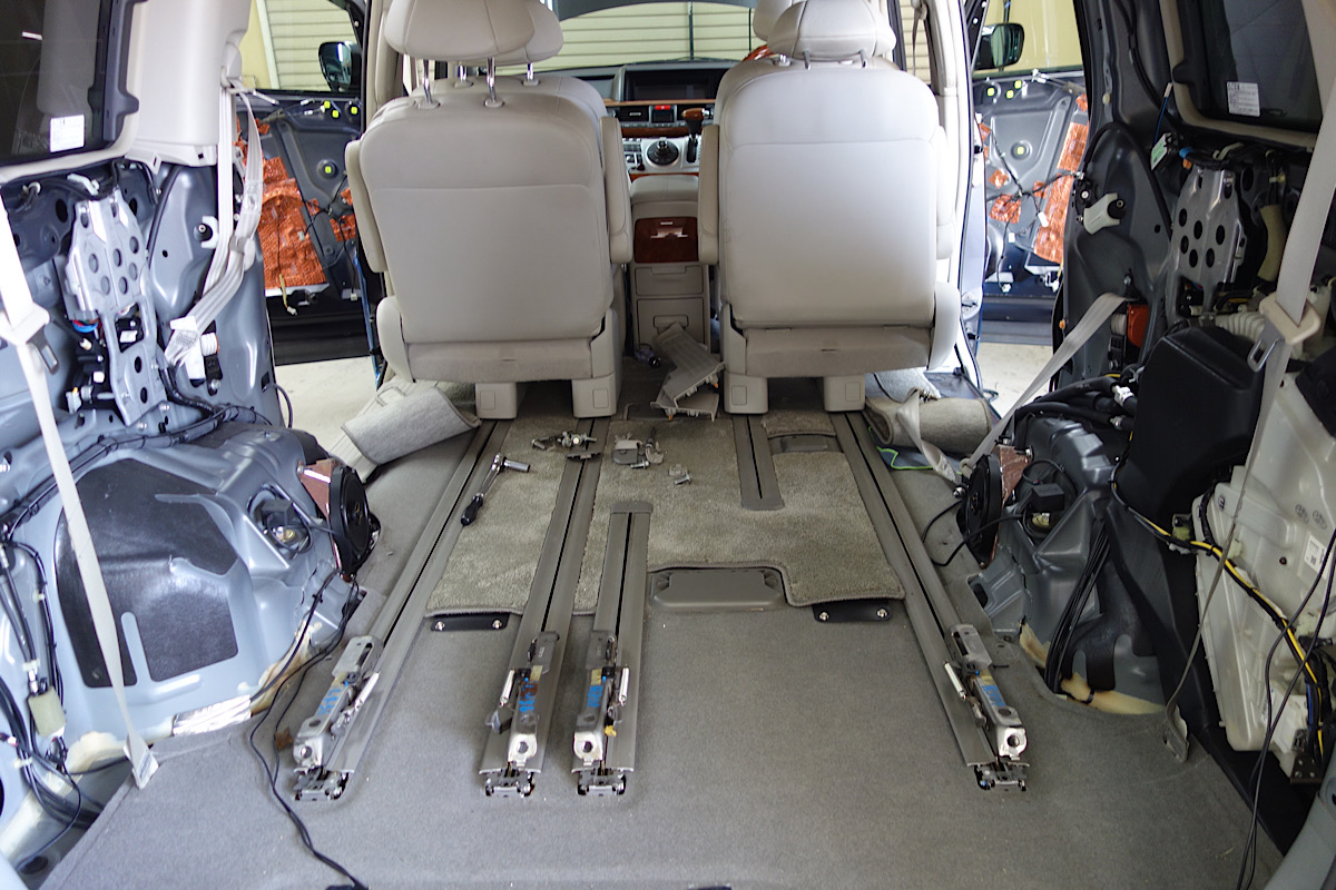 エリシオンに前後スピーカー、サブウーファーの取り付けです