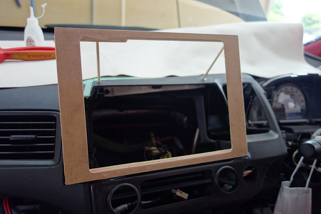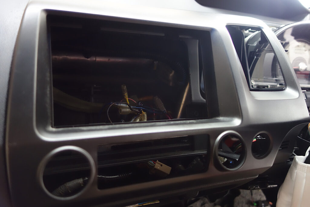 まずはナビとDSPのDIRECTORを撤去、エアコンスイッチ、ダクトなども成形するのに邪魔なので外してパネルのみにします