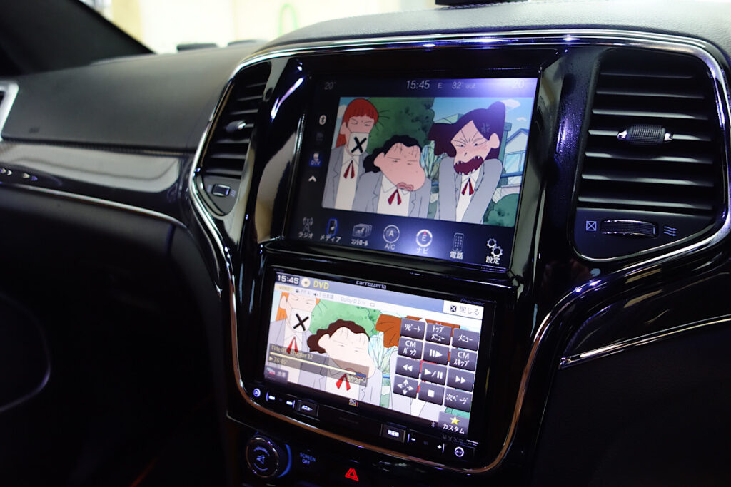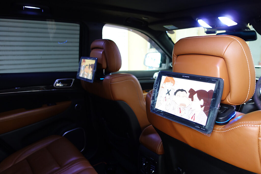 俊足グランドチェロキーにリアモニター取り付け