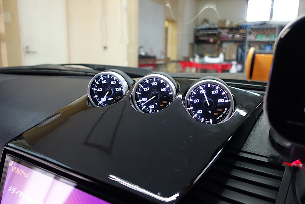 センターパネル上部の3連メーターにDefiのメーターを入れる作業、1ヶ月以上待っていただいてたのでとても申し訳ない^^;