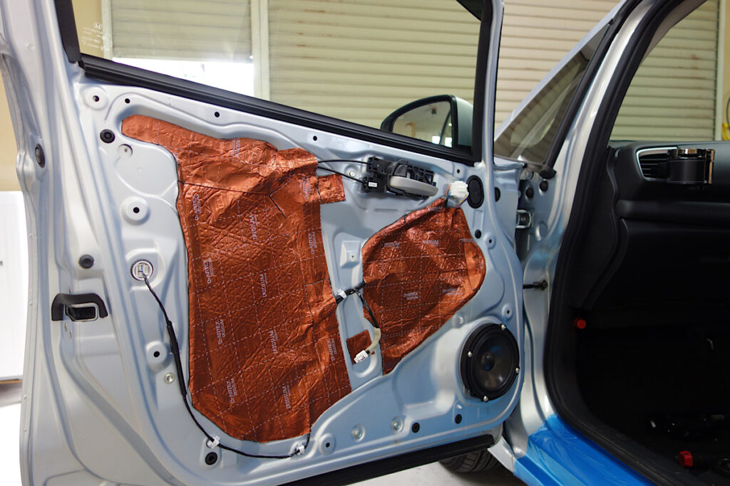 インナーバッフルはカロッツェリアのメタルバッフル、デッドニングはプラン標準のデッドニングLow