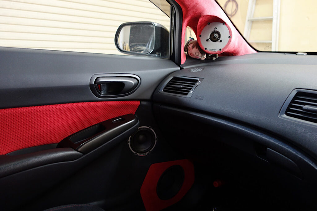 動作確認OKなので昨日ノートにしたセッティングをシビックにもしていきますがノートは2wayでシビックが4way(リアドアに20cmウーファーが入ってます)