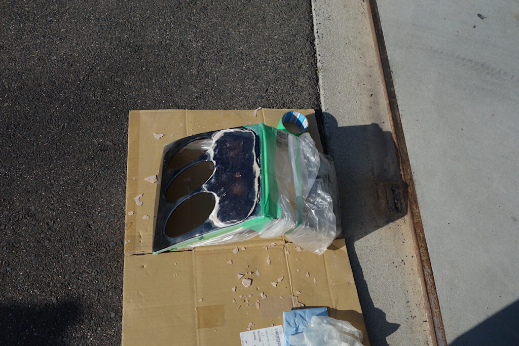 塗装が剥がしてある部分真夏になると剥離してボコボコになります!密着させるために色々な物を試してますがなかなかうまくいかない!さてどうしよう思いながら実験は続きます!!!