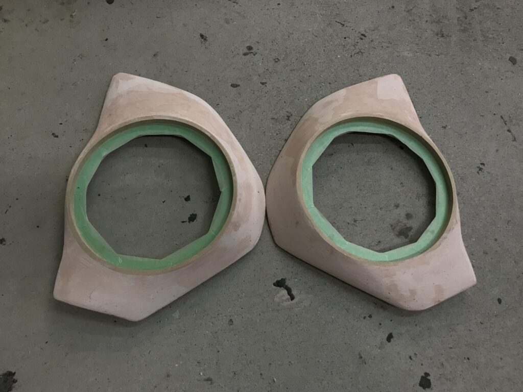 純正トリムのスピーカーグリル部分の形状がおにぎりみたいな形なのでおにぎりに沿って作っていきます