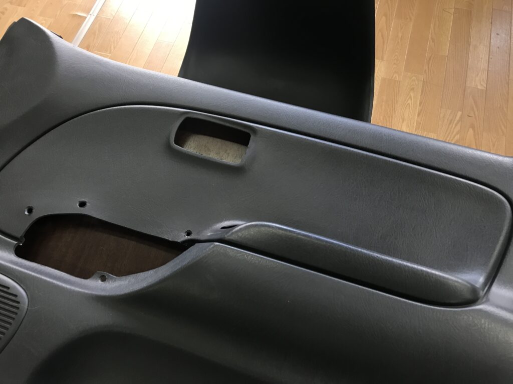 ピットに入れるのは雪が溶けてからにしてストックのドアトリムを1部分貼り替えます。全部プラスチックてのは品がないですよね(笑)なので真ん中の部分に生地を貼ります