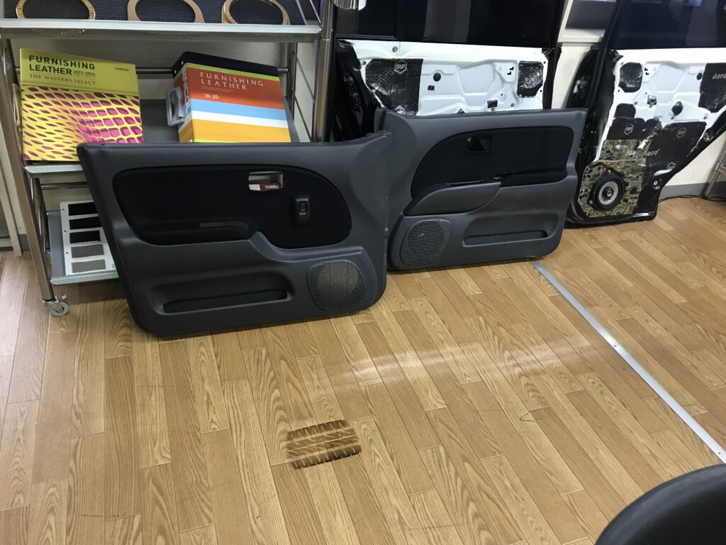 少しは品良くなったかな?軽自動車なのでこのぐらいでいいでしょう、現在着いてるドアトリムはスピーカーが変わるたびに作り直していたのでもはや限界なのでポイッします