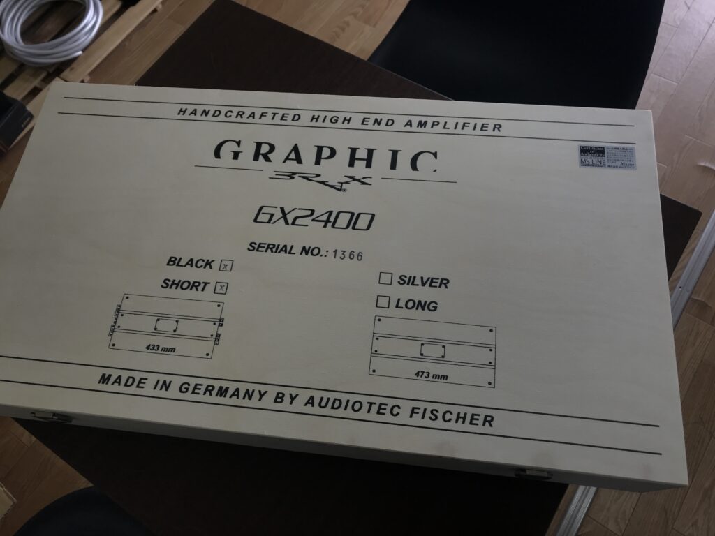 長年使用したアンプ、アルパインF900からブラックスGRAPHIC GX2400に交換、ブラックスのアンプは木箱に入ってます