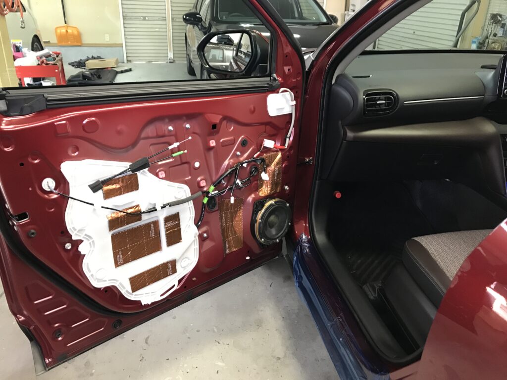 スピーカーはダイアトーンでトィーター・ミッドウーファーどちらもインナーでの取り付け、ドアのスピーカーはM&M製PCD-1でがっちり固定し軽くデッドニングします