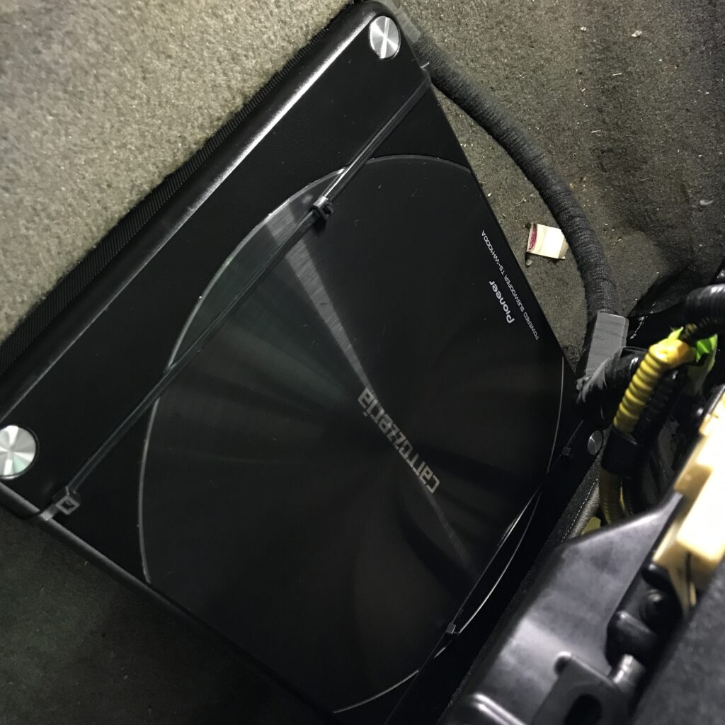 DSP、アンプは運転席シート下にアンプはカロッツェリアのGM-D1400Ⅱの小型アンプ、DSPも小型なので設置もスムーズに