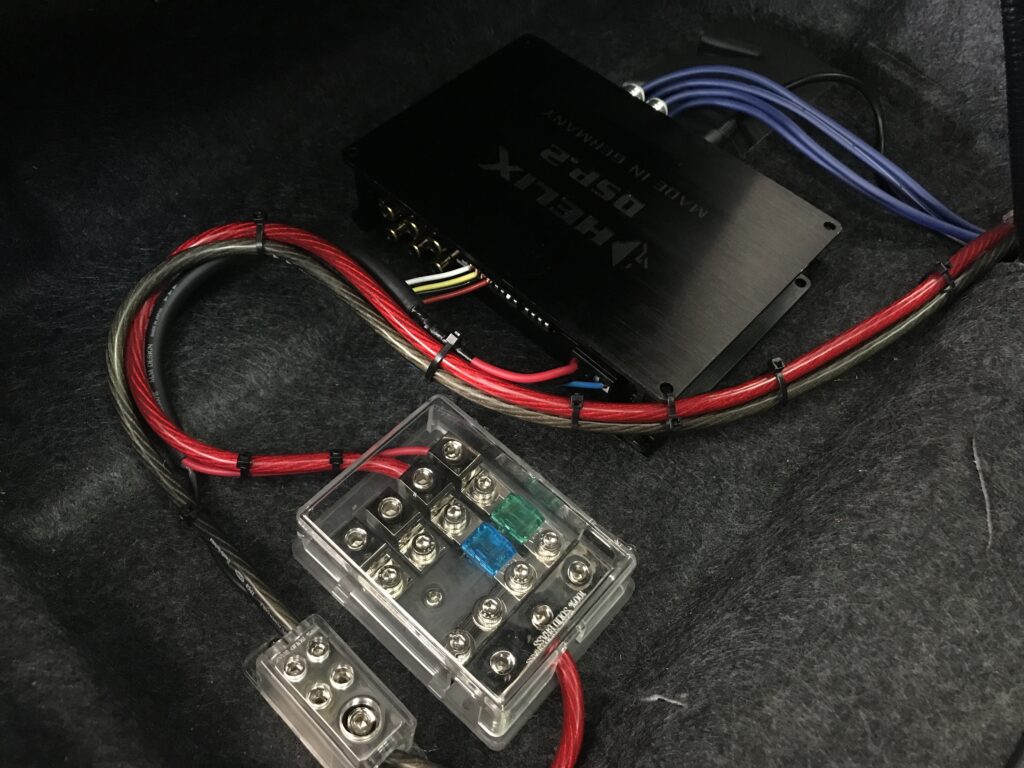 アンプが助手席側になったので電源ケーブル・スピーカーケーブル・RCAを移動、これが思ってたより時間かかった^^;移動したケーブル類をアンプに結線して完成