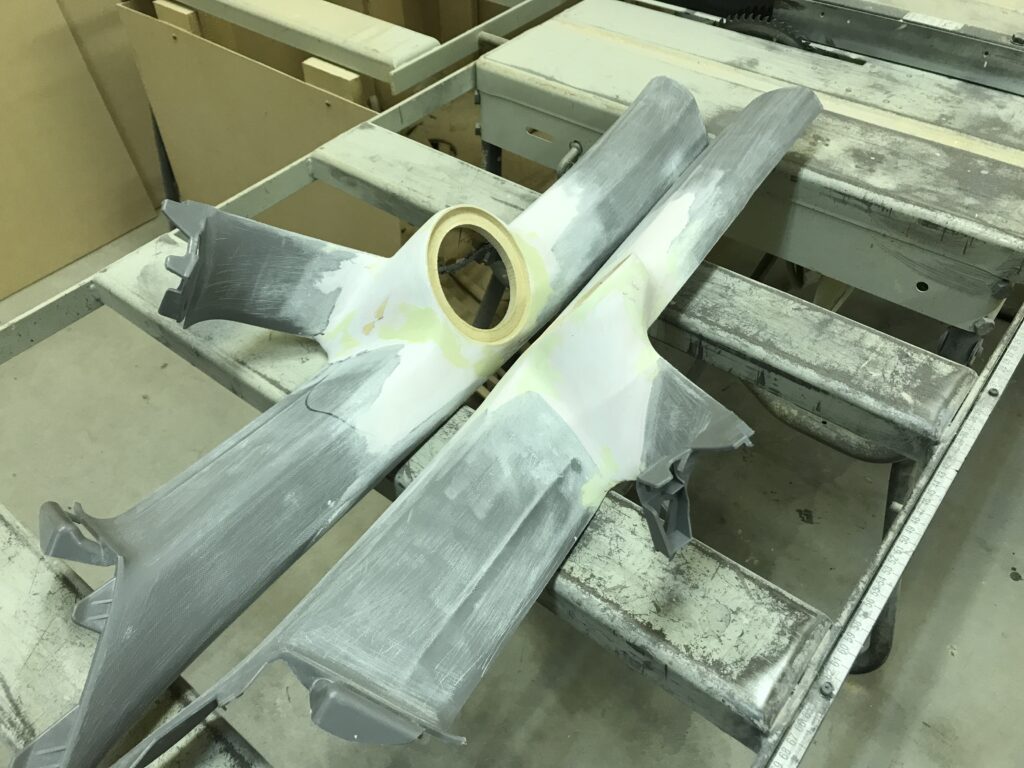 フロッキー塗装なのでサフェーサー吹いてからまた磨きますが今日はそんな時間は1秒たりともなかったのでこのまま放置、いつでもいいのでと言われているのでとことん甘えさせていただきます(^^)