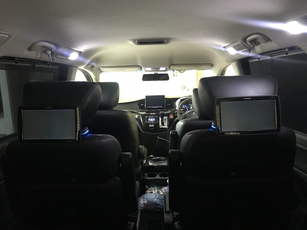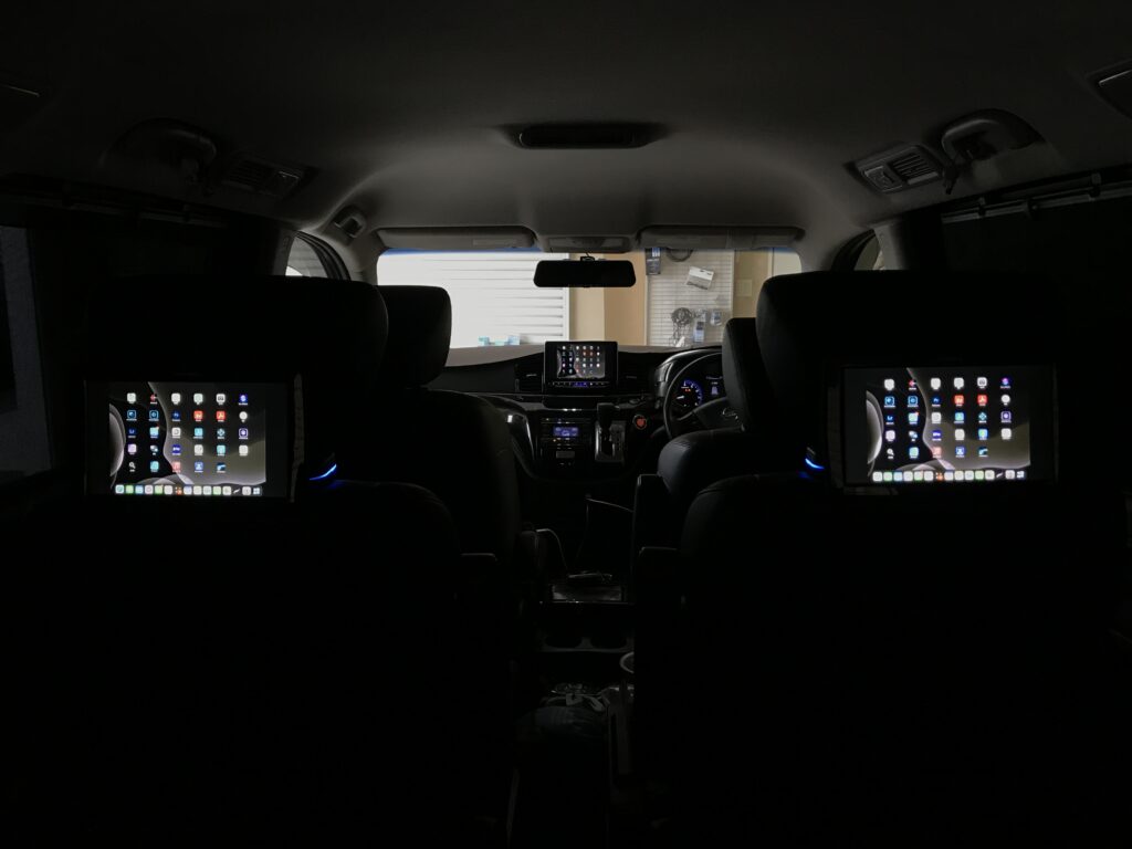 ディスプレイオーディオを付ける前にカロッツエリアのプライベートモニターを運転席、助手席じゃなくお子様が乗るサードシートのためにセカンドシートに取り付け、シートの動く範囲が広いのでケーブルがシートに挟まれないようにしディスプレイオーディオまで引き込み繋ぎ完成