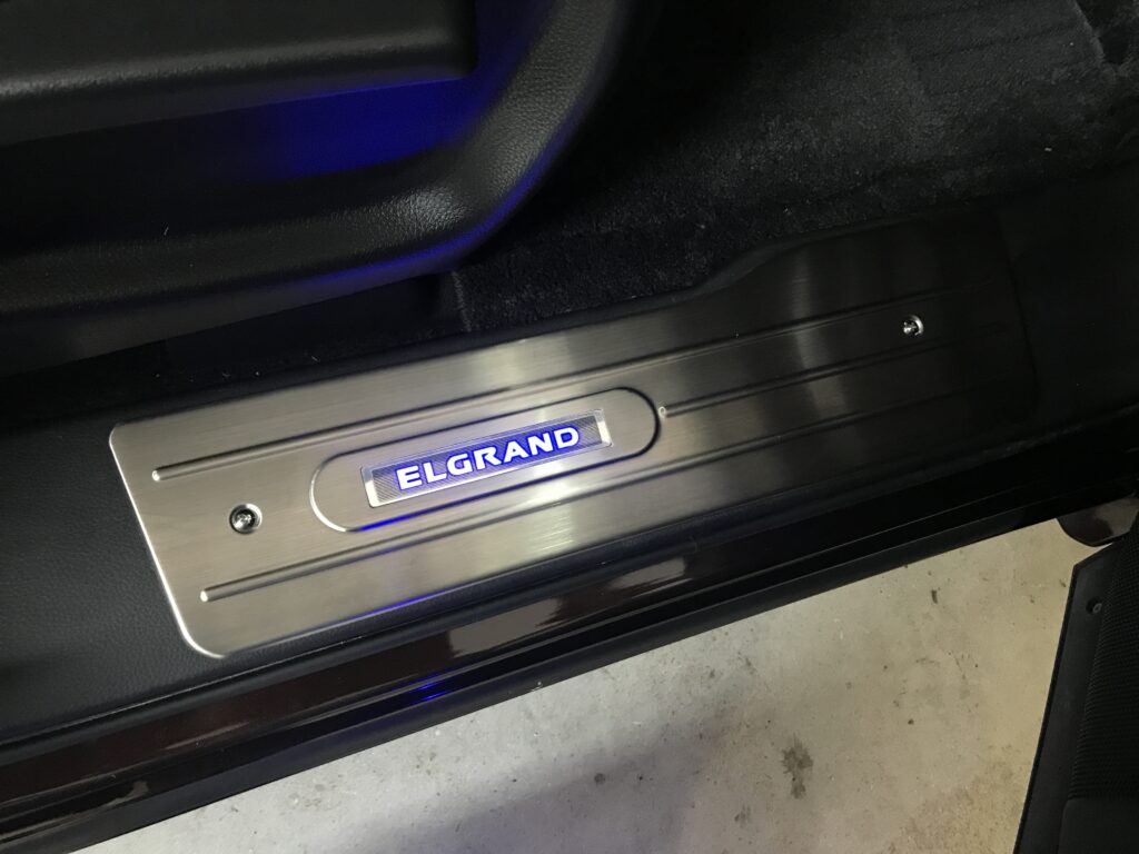 ドアを開ければELGRANDの文字が光るのが良い、踏みたくないですがお子様がいっぱいなので容赦なく踏まれるでしょう(笑)綺麗な時の写真を保存しとくことをお勧めします
