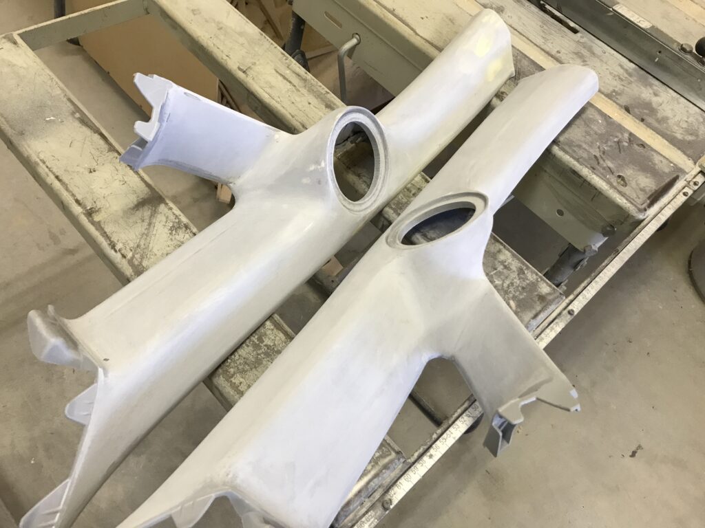 サフェーサー吹いて表面整え終了、赤のフロッキー塗装で仕上げます