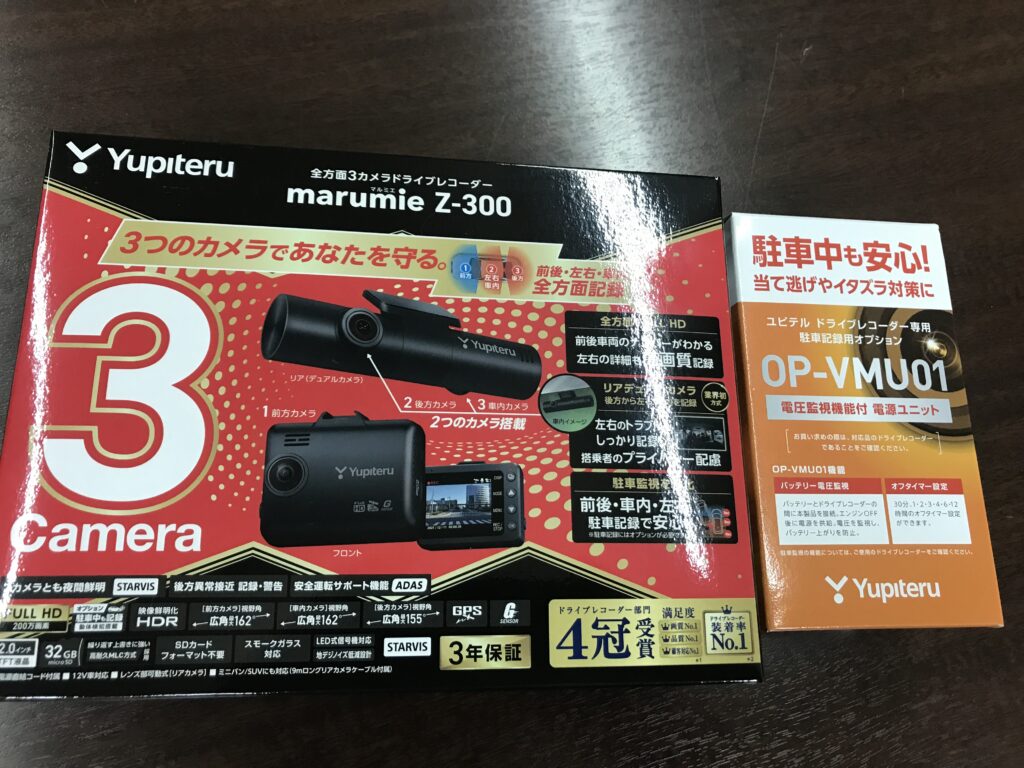 に3カメラドラレコに電圧監視ユニットを付けます