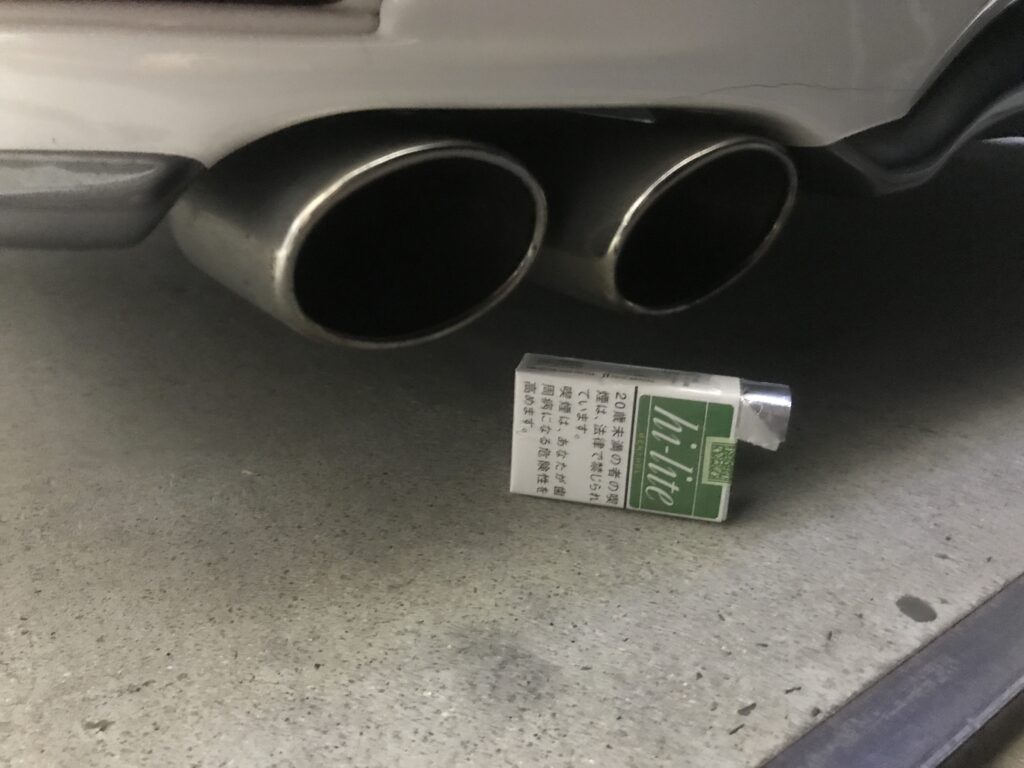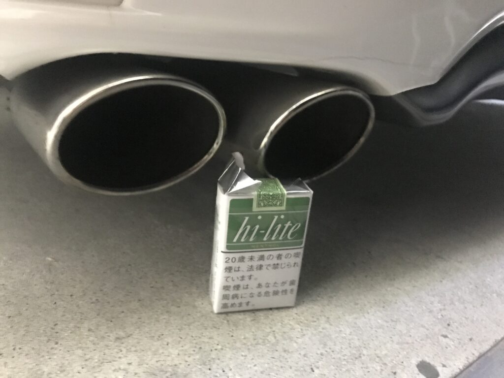 お客様が試聴してる間このセレナがどんだけ低いか写真撮ってました タバコを縦にして