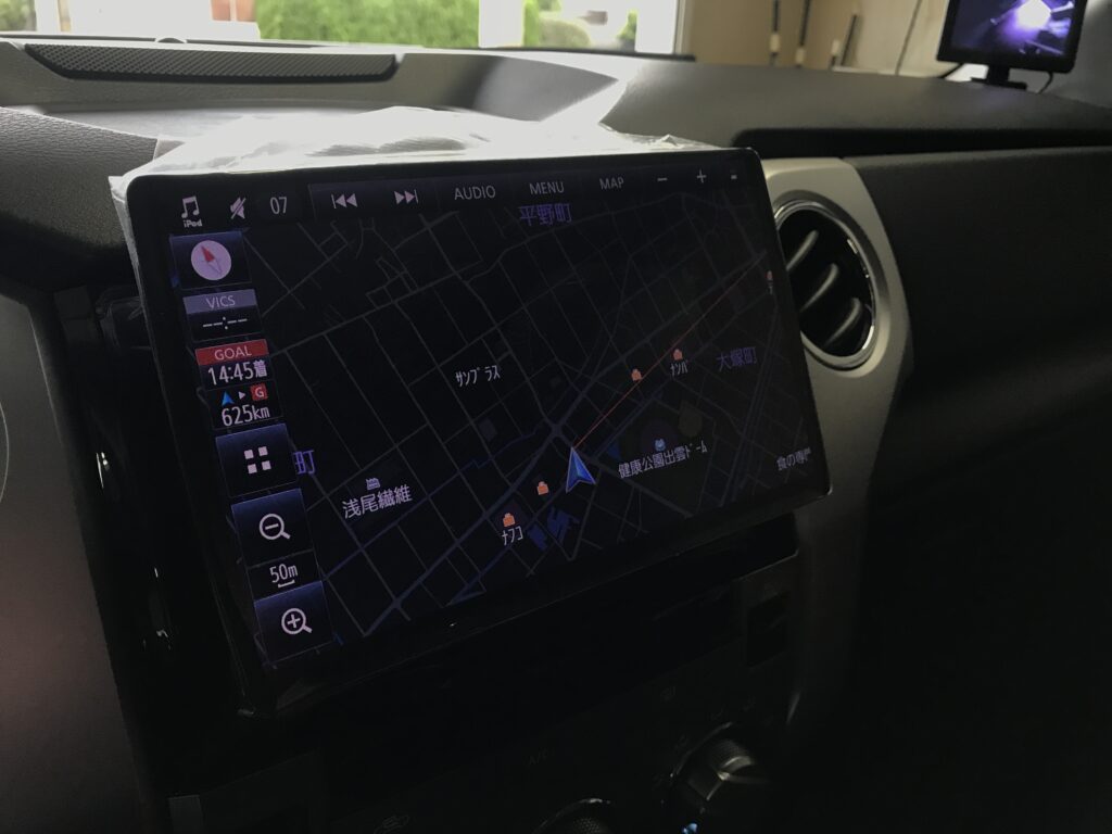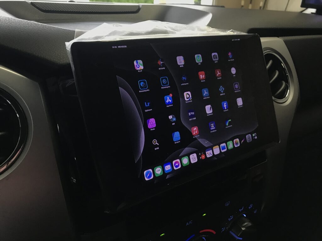 ナビ取り付けです。ナビはフローティングディスプレイのパナソニック、10インチですがタンドラに乗ってディスプレイ見ると10インチにみえません