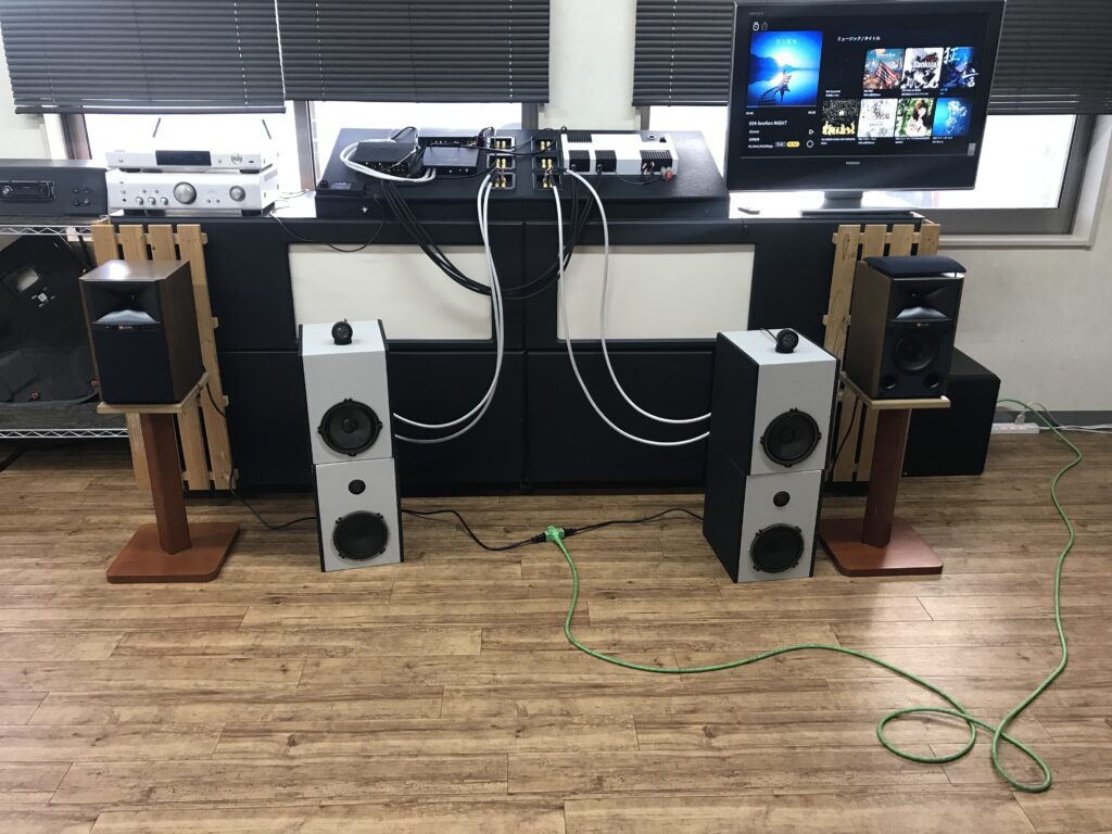 音楽を流して試聴するとザ・ストレートと表現したくなる抜けの良い音楽が流れ、パッシブネットワーク入っててこの音でフォーカスはっきりはありえん!と感動してましたがスピーカーの中にDSPが入っていてDSPのデジタルネットワークを使っているらしくパッシブレスでした!そりゃ音抜け良いは、おそらくミッドウーファーにはタイムアライメントを使って調整してると思います