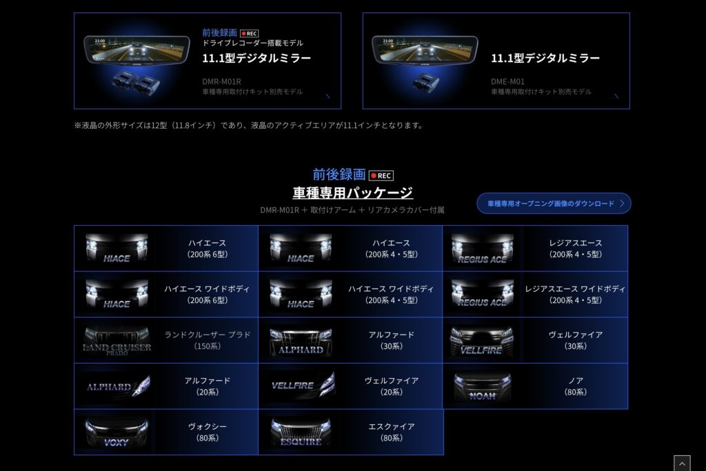 そんな中アルパインから車種専用タイプのデジタルインナーミラーがちょっと前から発売