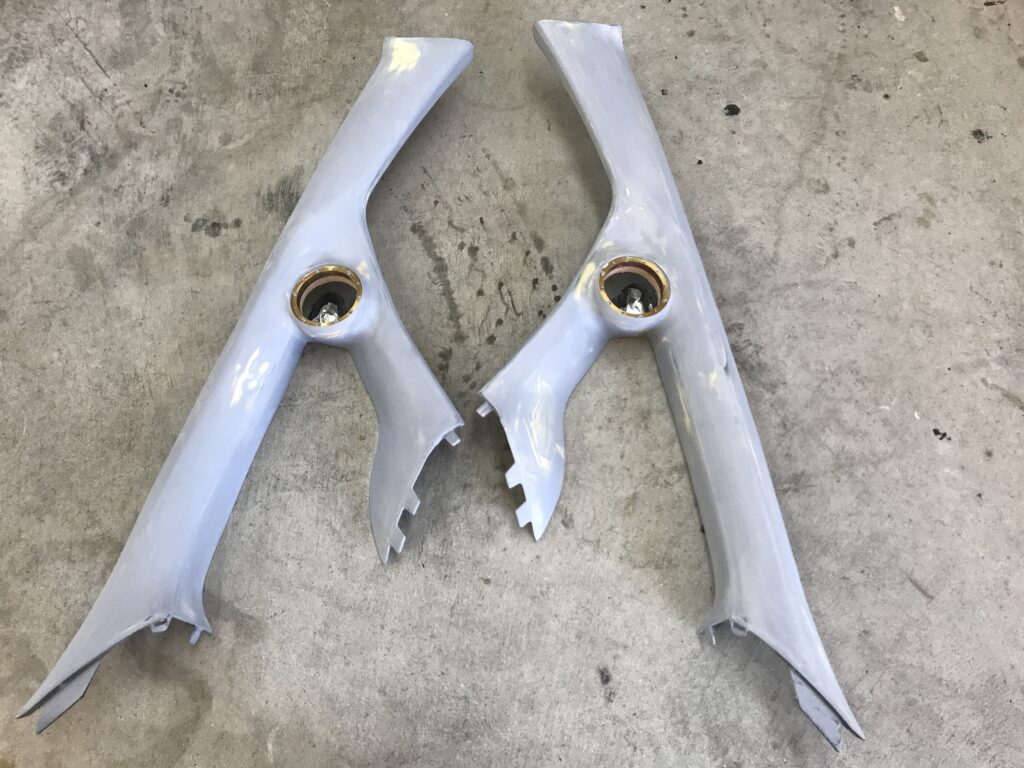 ノアのピラー製作続きです!先日の形からサフェーサー吹いて歪みを直し研いでいくと下地は完成