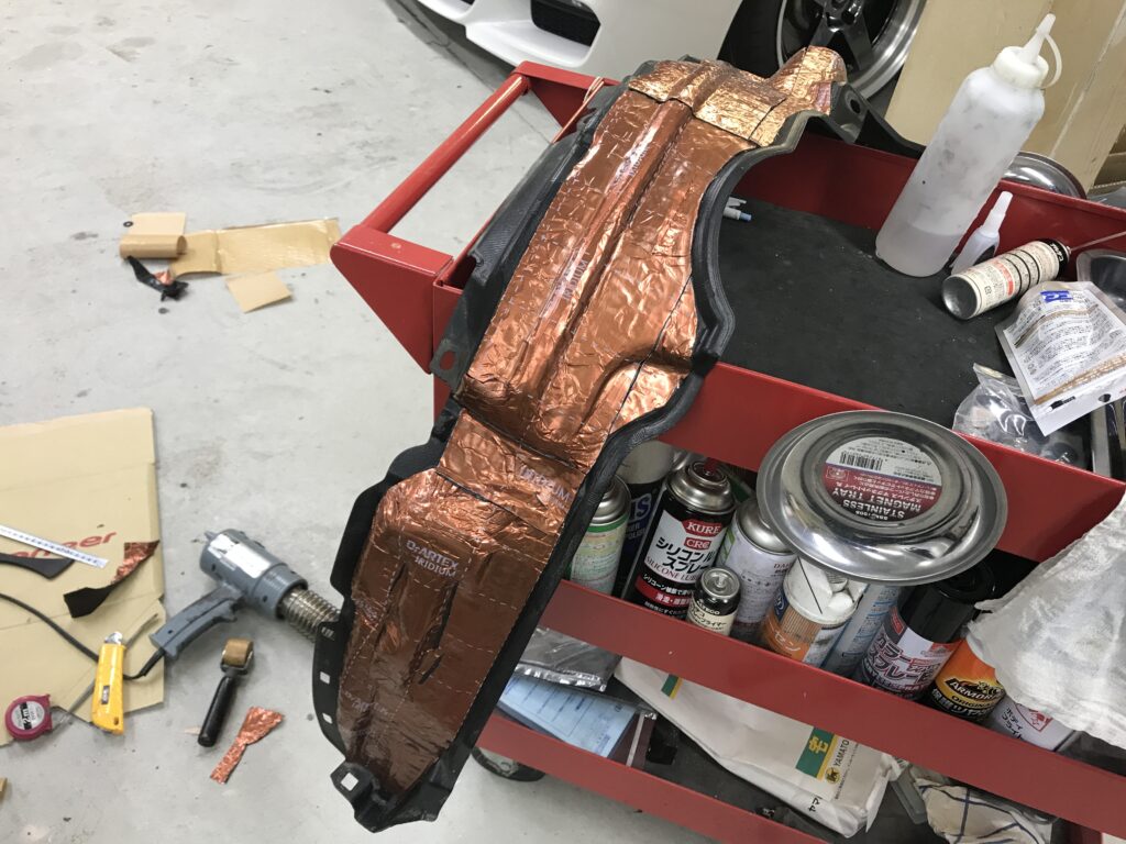 ここに隙間なく制振材を温めながら圧着、同じように車両側も貼って静音処理は完了