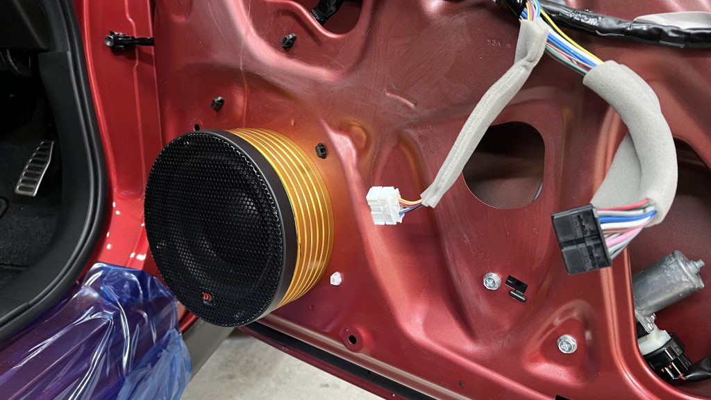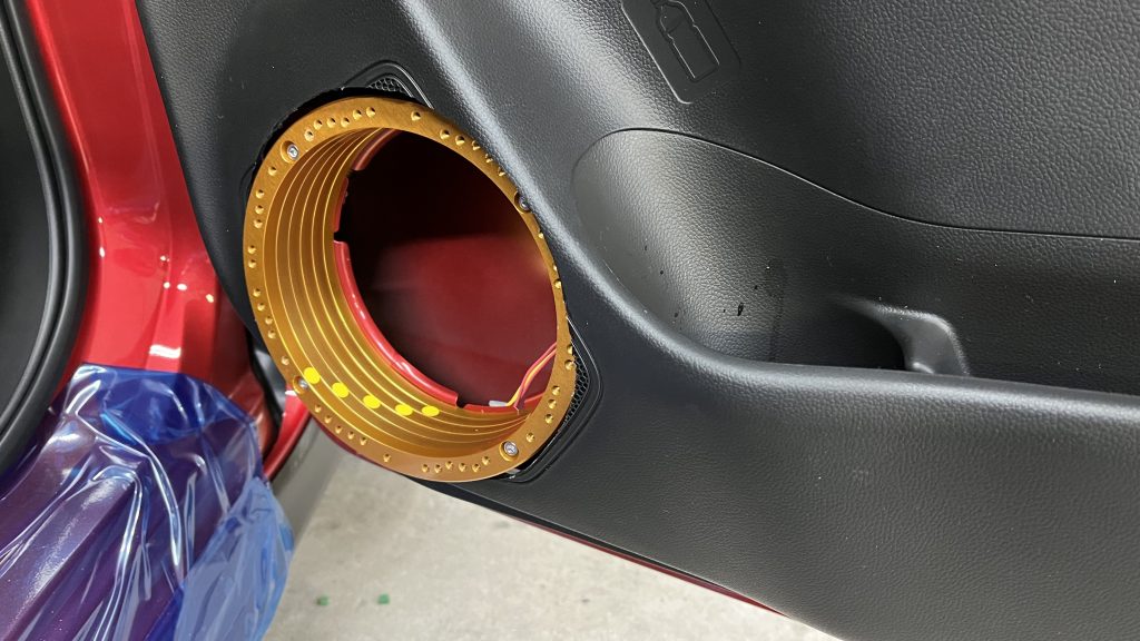 数ミリドアトリムからスピーカーが出っ張ってますがアウターバッフルのデザインでなんとかなるでしょう