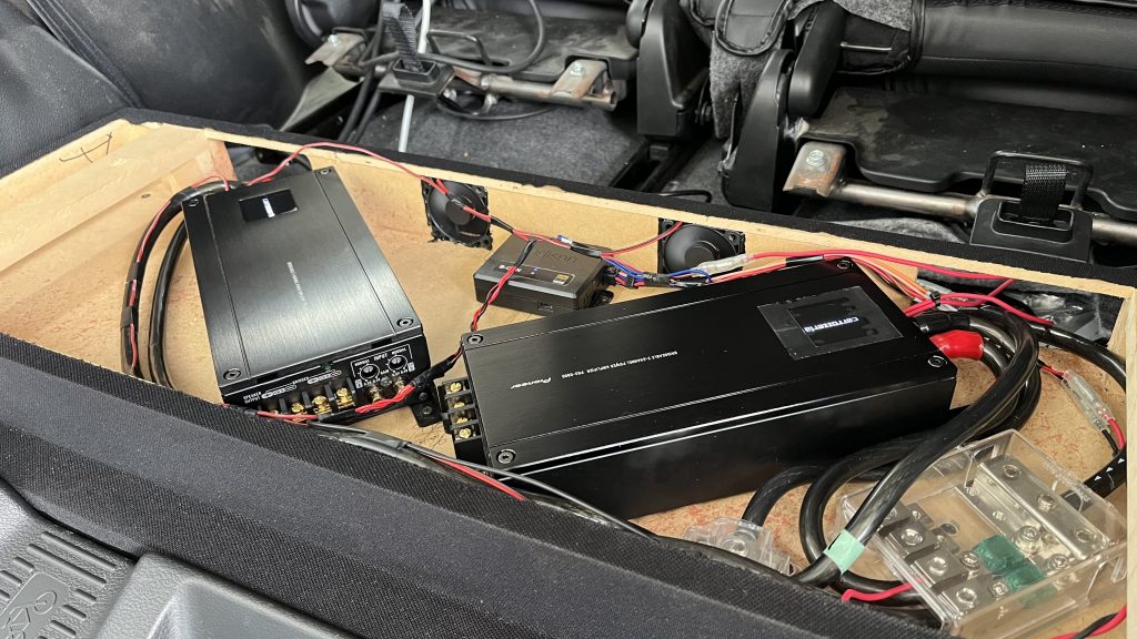 この場所のアンプは横置きに設置していましたが斜めに変更してアンプが極力離れるように設置