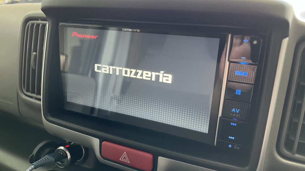 純正デッキを外し楽ナビ入れて横軸だけ合して完成です