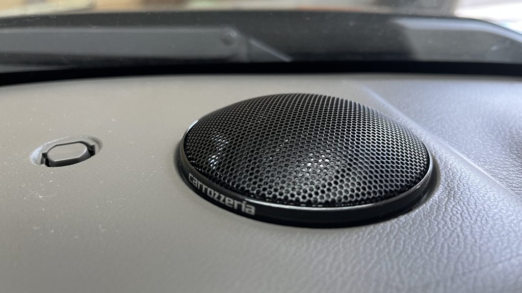 箱の上に乗ってるグリルが純正位置に取り付けるトィーターカバーです。この中にトィーターを固定してダッシュボード上の純正位置に装着、この取り付けキットそんなに高くないので純正風求めるなら良いと思います