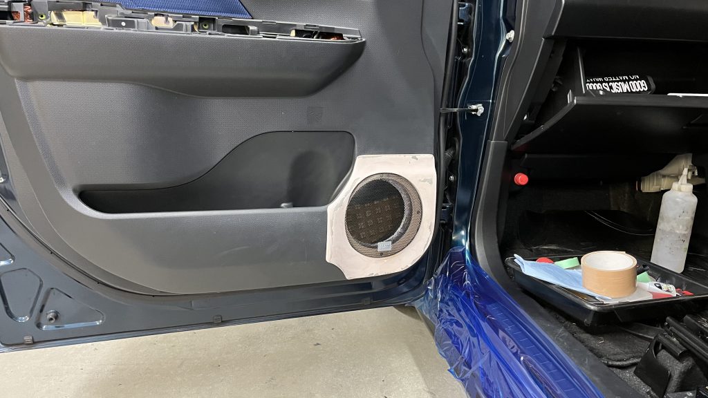 今回制作のアウターバッフルはファイバー1枚で型取りしたのですがいらないところを切ったりしたら強度なくパテを盛ると反って時間かかってしまいました。後で削るにしろ強度出るのでファイバーは2枚がいい
