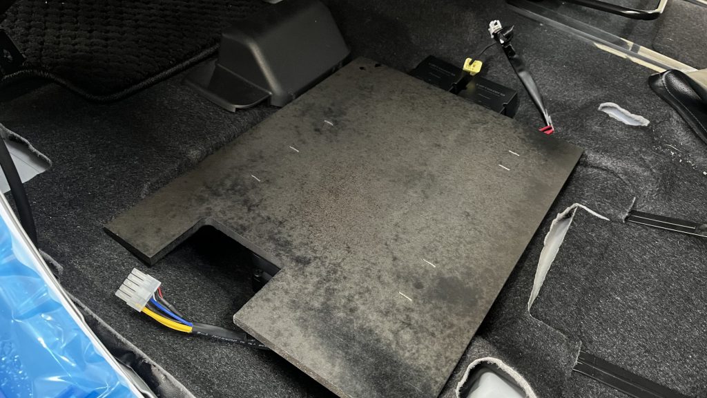 まずはワイヤリングから助手席の下にパッシブネットワークを置いて運転席下にサブウーファーをと考えてましたが助手席の下に置けない事が判明して全て運転席下に収めていきます