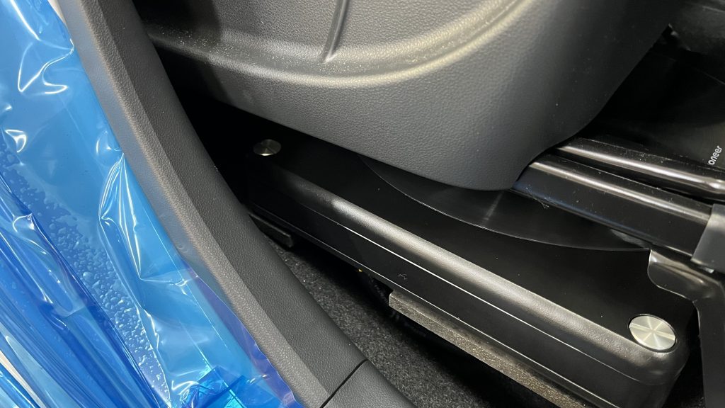 こんな感じで仕上がります。商談の時は薄いから大丈夫ですと言ってたのですがシートレールとギリギリいっぱい!