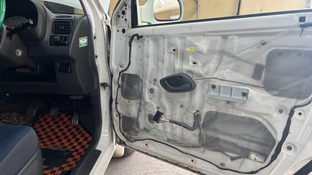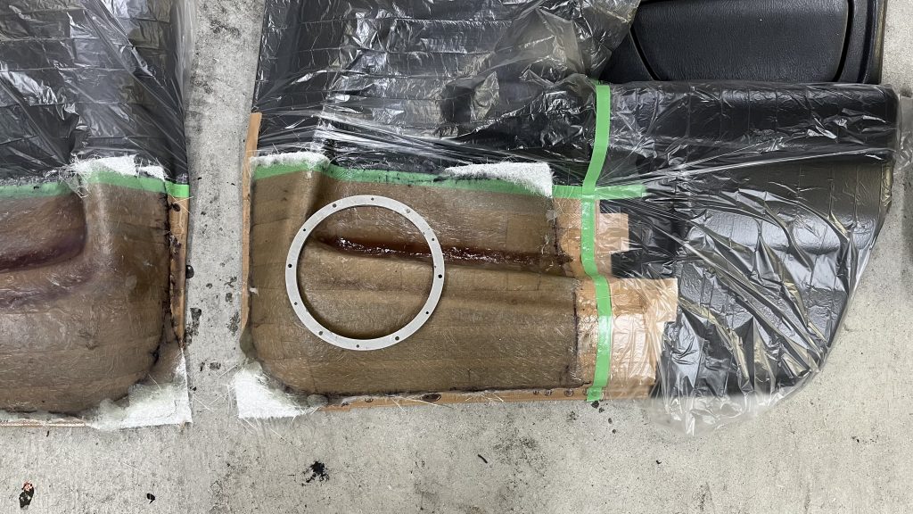 アウターバッフル作ります。この車純正でドアにスピーカーが付いてない車両なので加工して付くようにしていきます