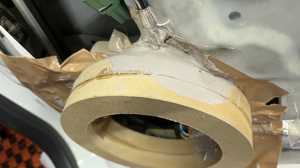 ここからパテを盛り形にしていきます。今日作業予定無かったのでアウターバッフルは完成させるつもりでしたがこの時点で外は真っ暗