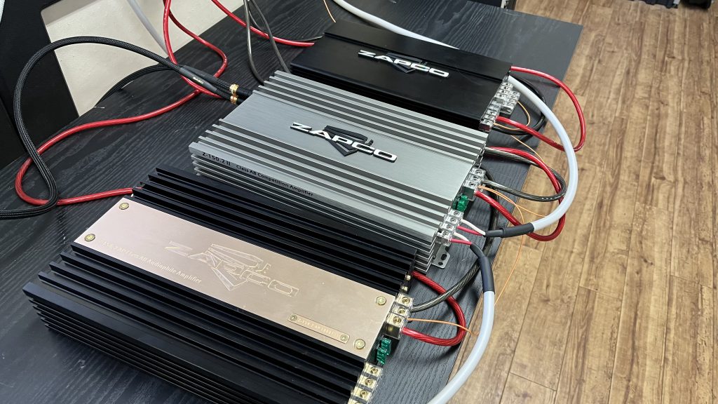 只今ZAPCOアンプ3機種試聴可能でございます。各機種モノラル・2ch・4ch・6chモデルがラインナップ