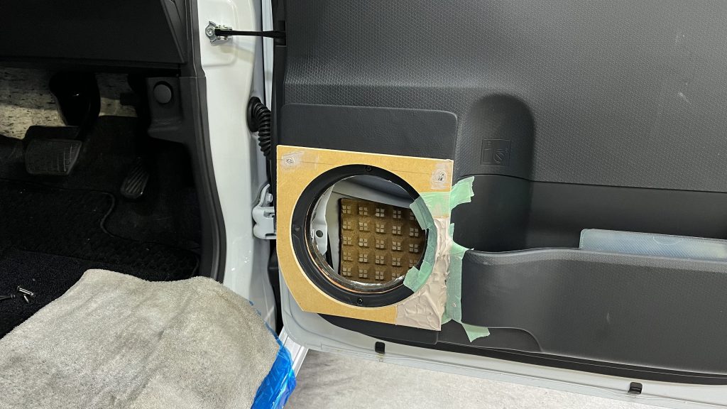 スピーカーグリルを作って欲しいとの事で制作します。お客様と相談しアウターを作り直すか上から被せるか相談し上から被せる方で決定、グリルが付くように加工します