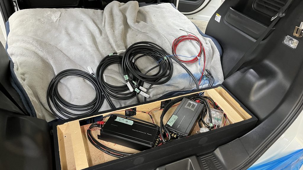 アンプラックからRCA・電源・リモートを前方に引き直す準備完了